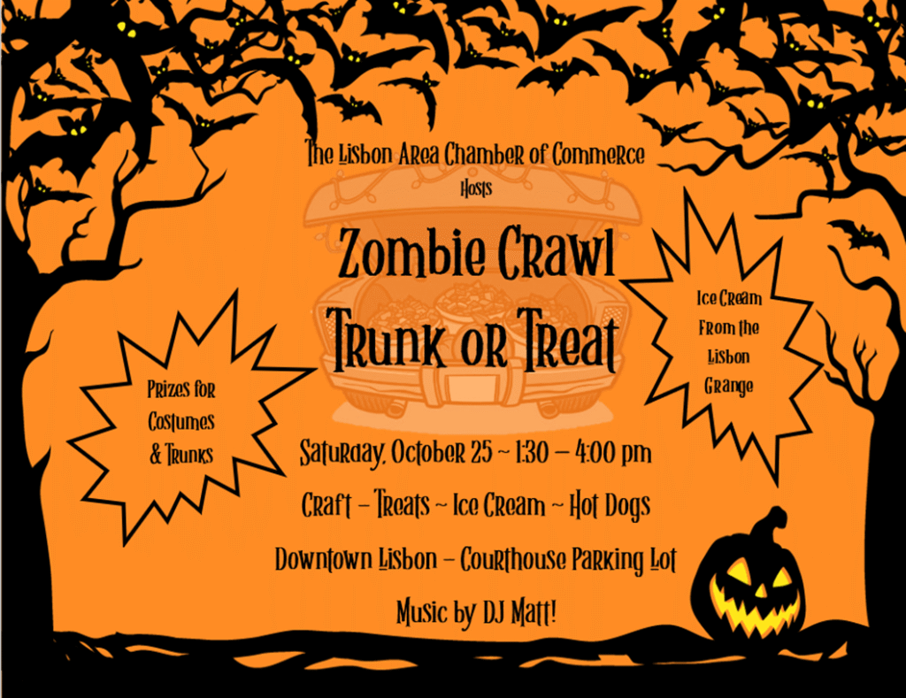 Our Annual Zombie Crawl & Trunk-or-Treat are just a few weeks away…Saturday, October 25 from 1:30 – 4:00 pm! If you’re interested in decorating your trunk and passing out candy, please register at the link below.