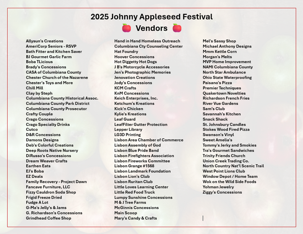 We have the BEST Johnny Appleseed! Johnny will be at his cabin on the square during the Festival. Stop by and say hello. Visit, like and share his Facebook page!